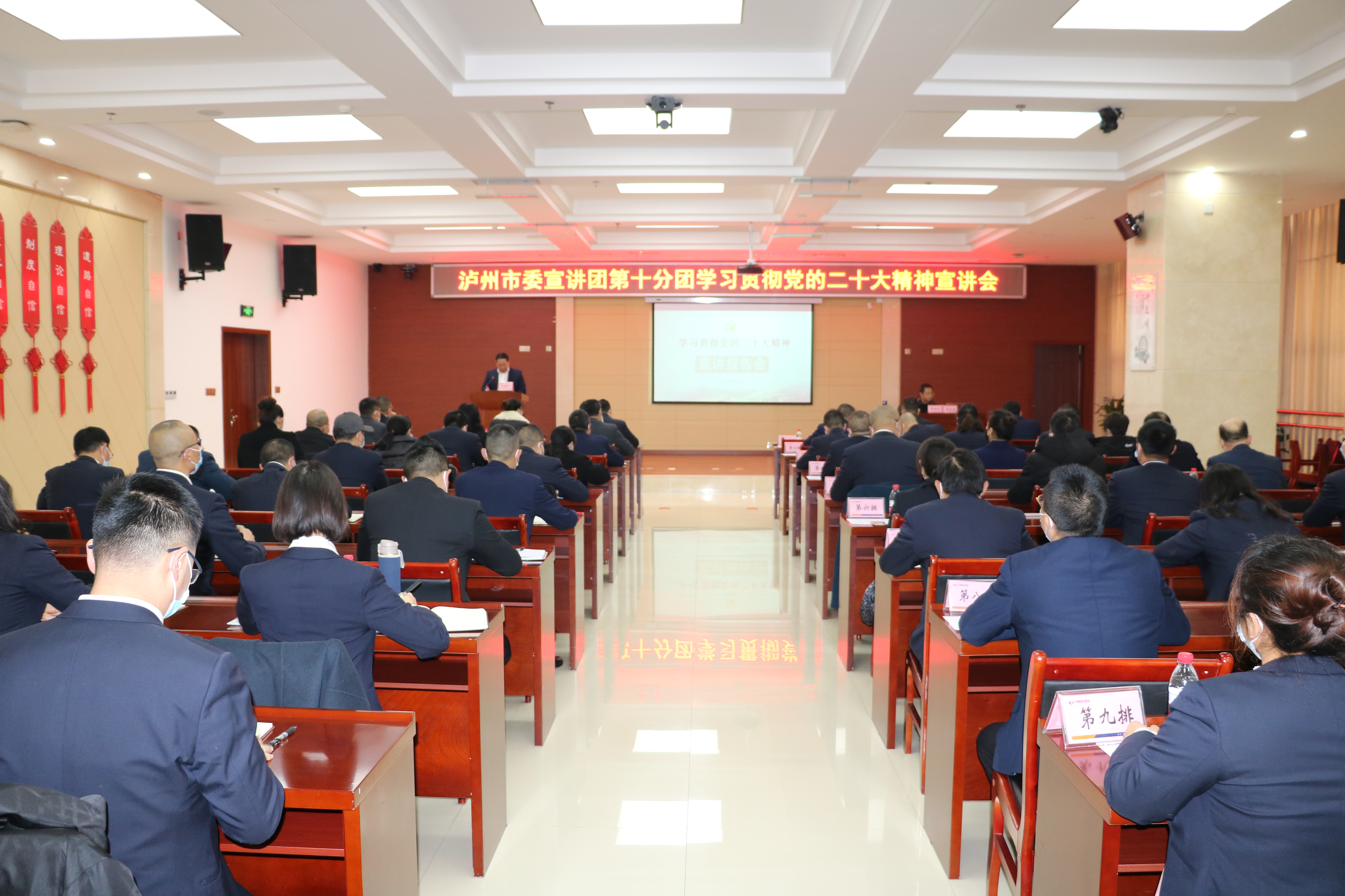 12月8日,瀘州市委宣講團(tuán)第十分團(tuán)學(xué)習(xí)貫徹黨的二十大精神宣講會(huì)在瀘州城投集團(tuán)舉行,市委宣講團(tuán)第十分團(tuán)成員、瀘州職業(yè)技術(shù)學(xué)院數(shù)字經(jīng)濟(jì)學(xué)院教授曾慶雙作主題宣講。集團(tuán)公司在家領(lǐng)導(dǎo)班子成員、中干,各子公司領(lǐng)導(dǎo)班子以及黨建部門負(fù)責(zé)人等參加了會(huì)議。
