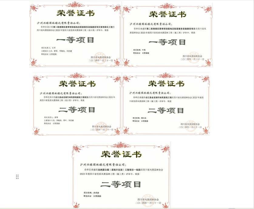喜報(bào)!瀘州城投集團(tuán)興綠園林公司多個(gè)項(xiàng)目榮獲2023年度四川省優(yōu)質(zhì)風(fēng)景園林工程獎(jiǎng)