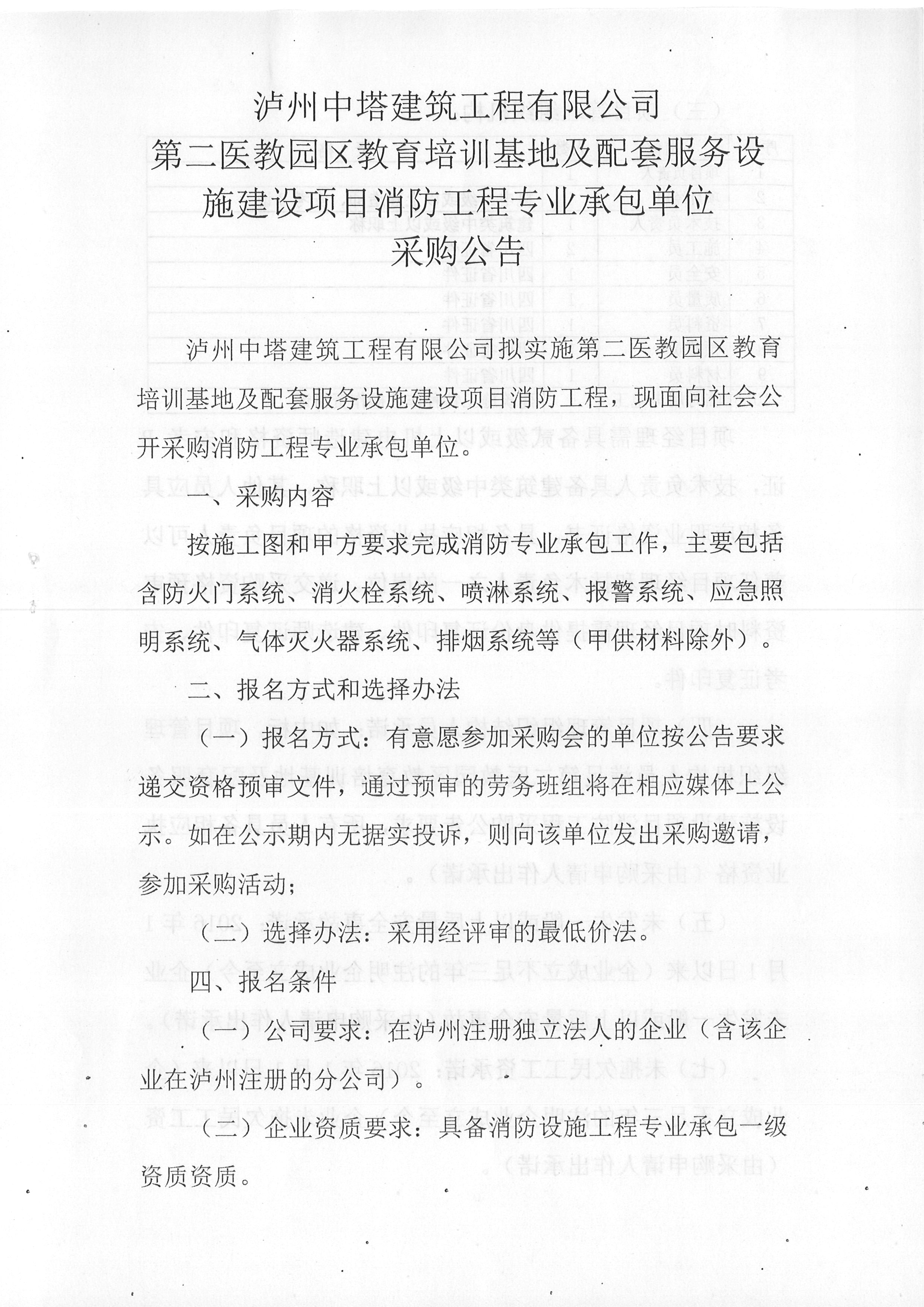 中塔公司關(guān)于第二醫(yī)教園區(qū)教育培訓(xùn)基地及配套服務(wù)設(shè)施建設(shè)項(xiàng)目消防工程專業(yè)承包單位采購(gòu)公告