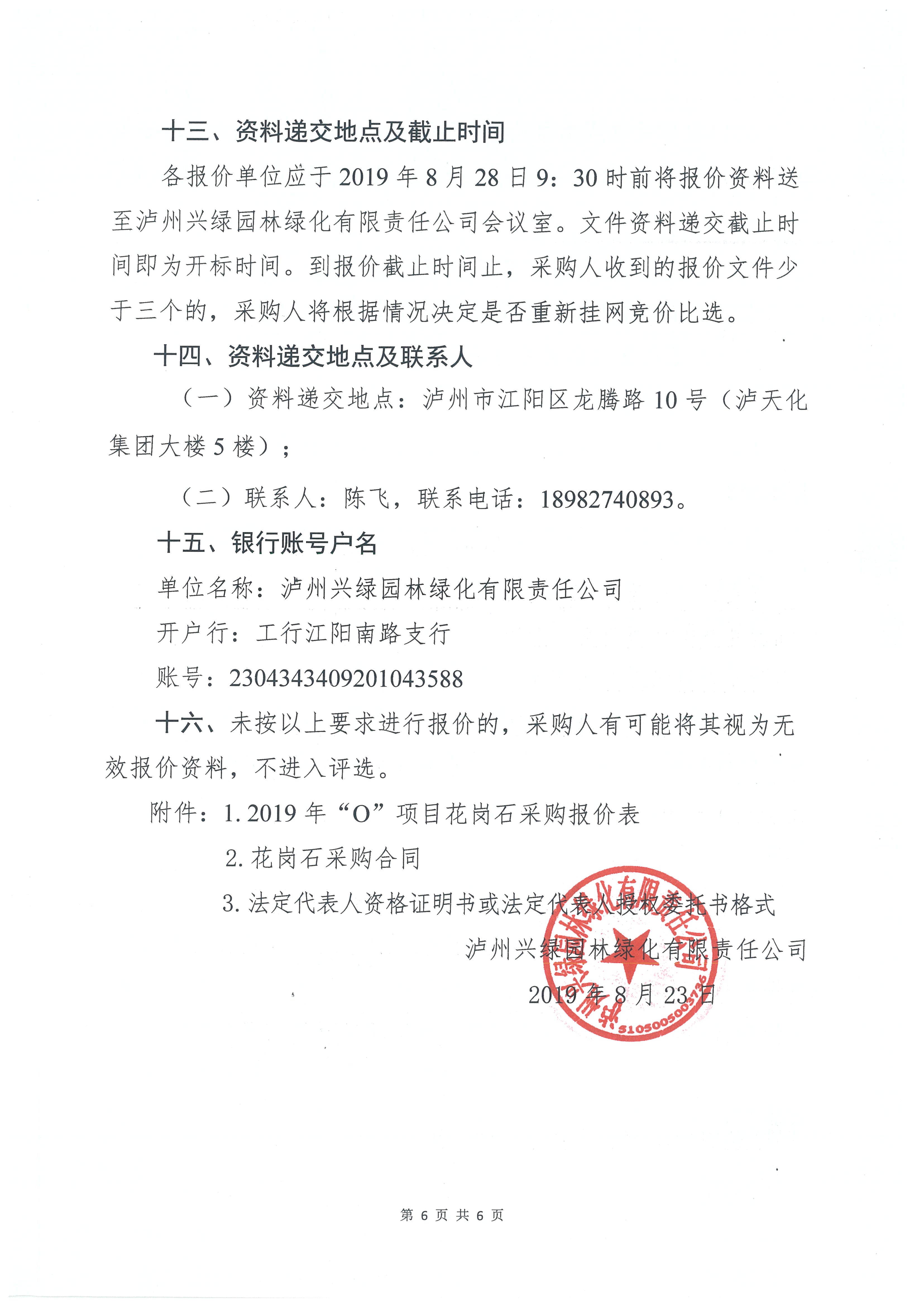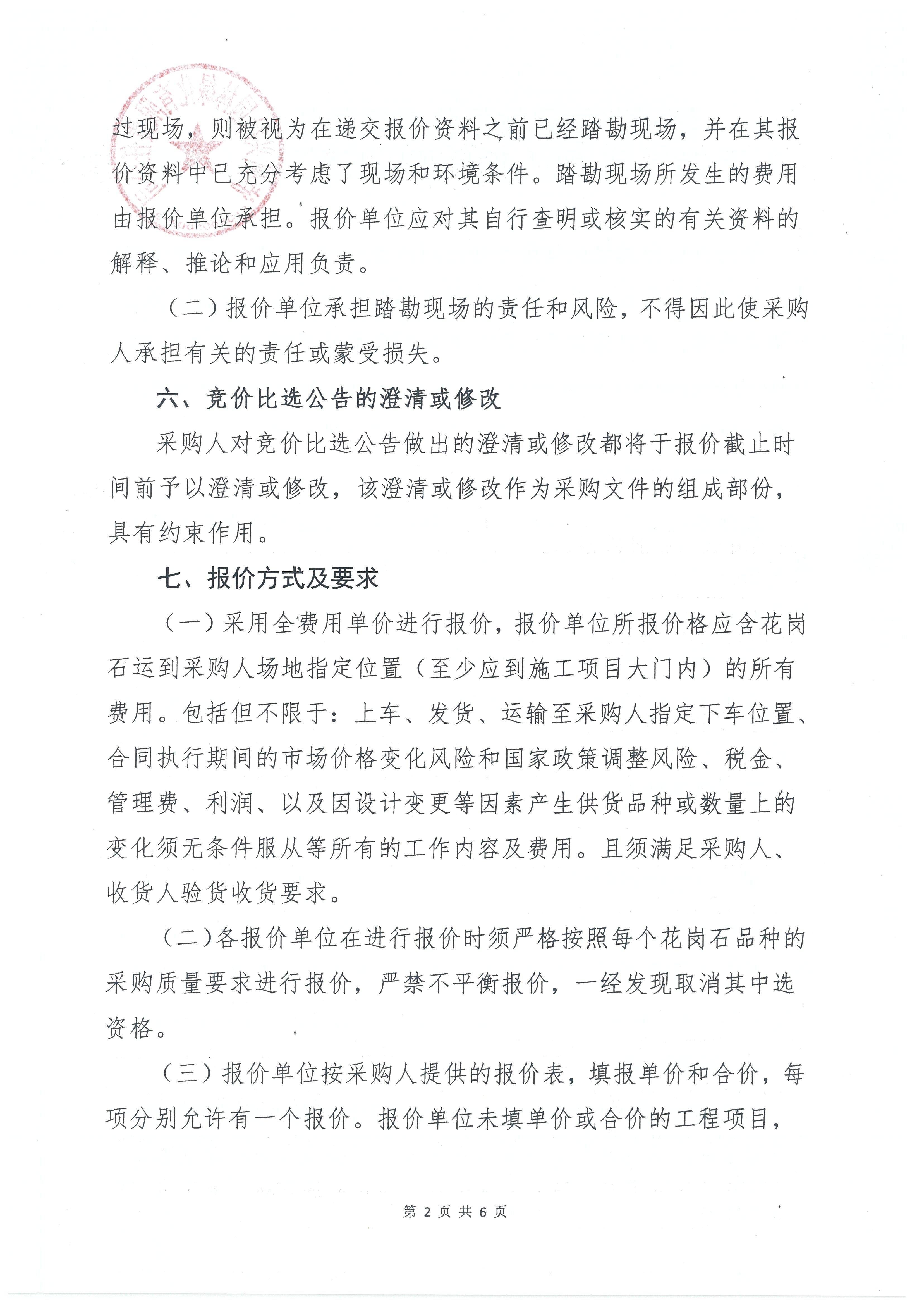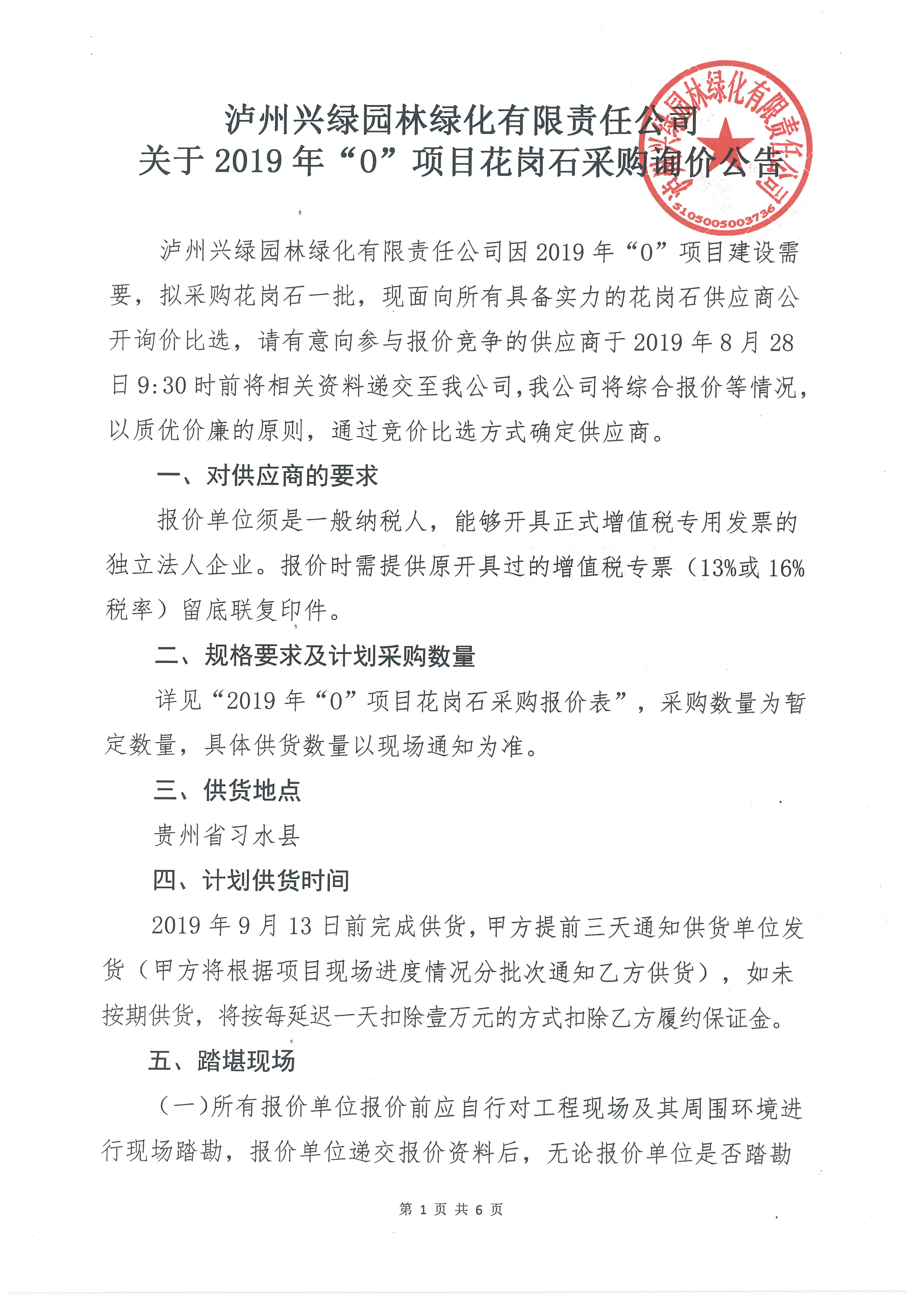 2019年“O”項目花崗石采購詢價公告